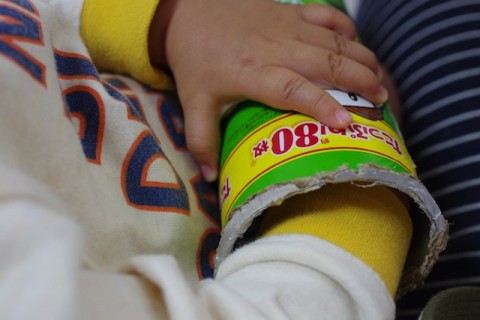 はたまた、使い終わったラップの芯を渡したらそこへ鉄砲の玉詰めるみたいにキレイに押し込んでて笑っちゃった。
