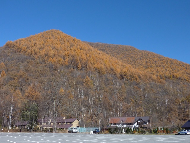 多分繁忙期には観光バスでにぎわうであろうバスセンターからみた紅葉。